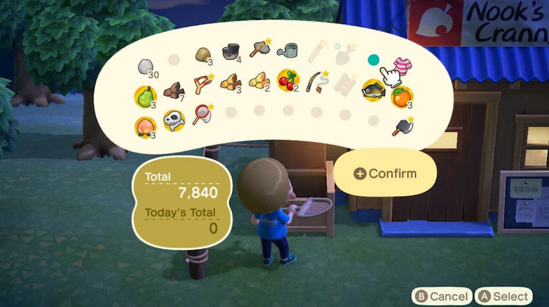 And then, when we sell the vouchers in Nook’s Cranny we are spending the vouchers in return for 3,000 Bells each: